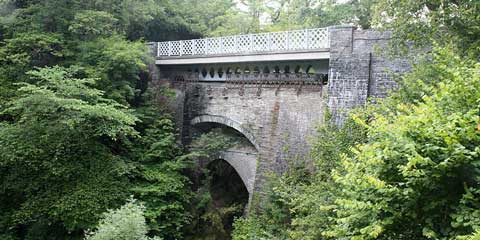 The bridge is at a built where the Mynach falls around 90 metres (300 ft) and meets the Rheidol.