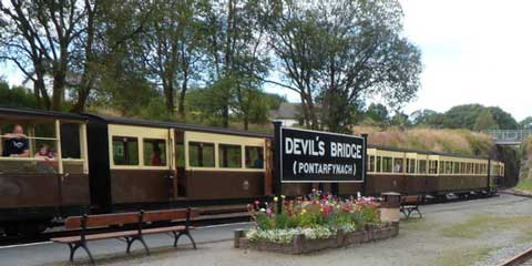 Devil's Bridge is served by Devil's Bridge railway station on the Vale of Rheidol Railway, which opened between Aberystwyth and Devil's Bridge in 1902 (note - if between trains, there isn't really time to take the longer walk) – see below.