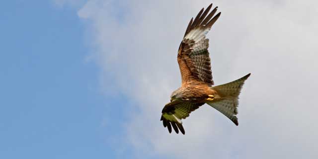 Wild Red Kites are fed at Gigrin Farm every day of the year, at 2 pm during the winter months, and at 3 pm during the summer. Watch from the bird hides as with breathtaking feats of aerial piracy red kites compete with buzzards and crows for choice pickings. As the first crows land amongst the meat the kites go on the offensive. They watch and wait their chance to furl their wings, dive in , skimming the ground to snatch a scrap before rising to escape the beaks of angry crows.